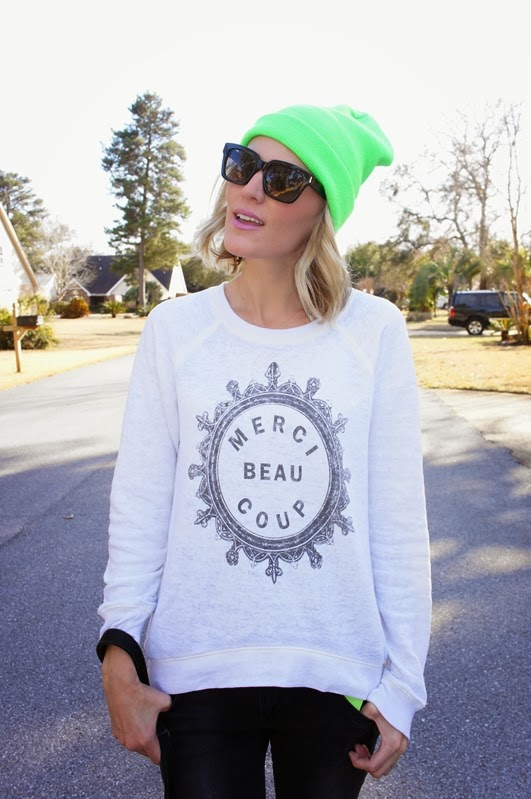 {sweatshirt: Signorelli c/o; jeans: Anine Bing c/o (also buy HERE at Shopbop); beanie: AmiClubwear c/o; sneakers: Nike c/o JDSportsCo; sunglasses: Saint Laurent}