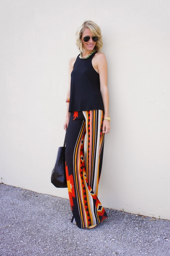 If there's one print that I love the most it's a southwest print. Tribal, aztec, navajo, you name it I love them all. I think it's the mix of shapes and colors (especially desert tones) that really makes my heart skip a beat. So when Ami Clubwear sent me these rad southwest bell bottoms I was smitten. I love a bell bottom pant, be it denim, polyester, or cotton. These bell bottoms were so comfortable and since they were super long (I'm 5'10 and they still touched the floor) I was able to rock my 4" wooden wedges.