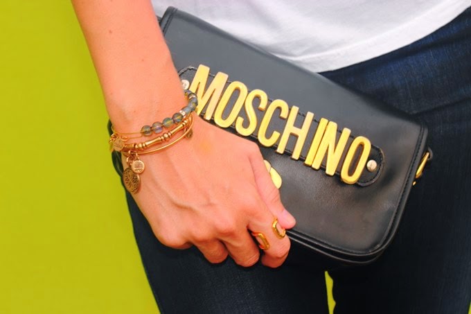 {tee: A Pea In The Pod c/o // denim: CoH c/o A Pea In The Pod // necklaces: Maya Brenner Designs c/o and Gorjana c/o // heels: Zara (old, but similar style HERE) // sunglasses: Saint Laurent // clutch: vintage Moschino // bracelets: Alex and Ani c/o}