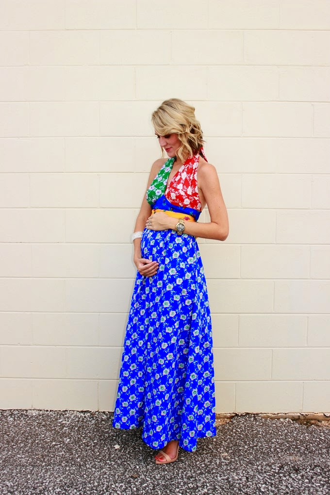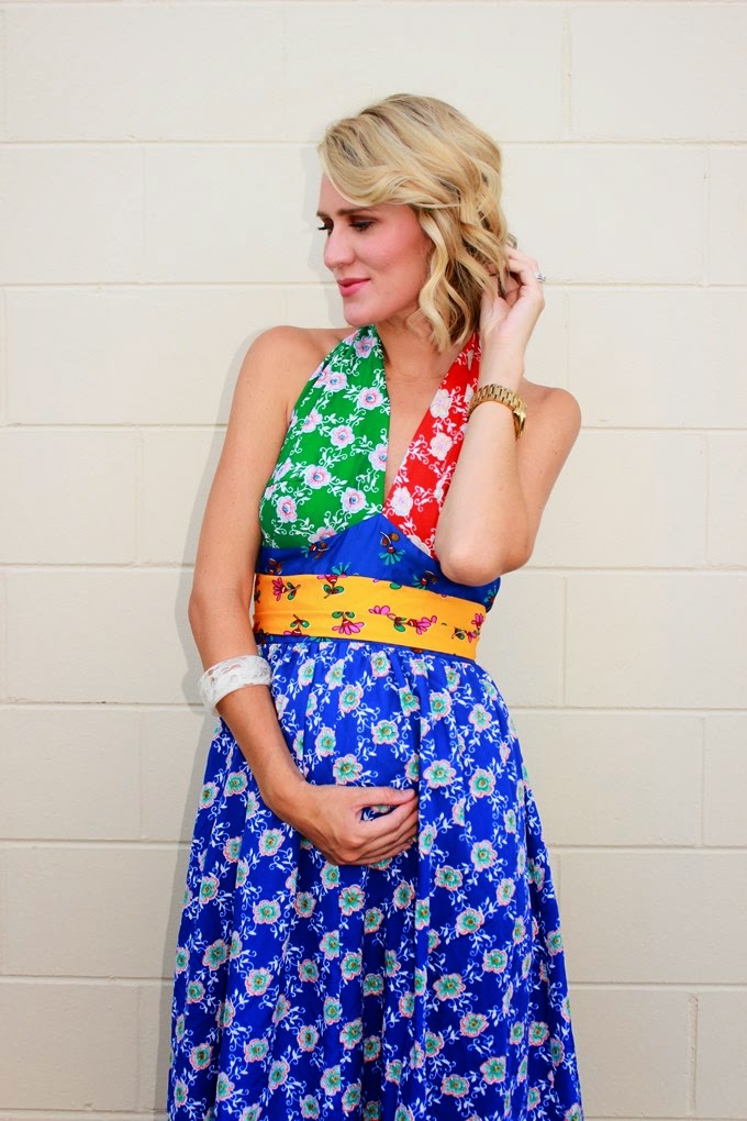 Everyone has that one item of clothing in their closet that they find themselves reaching for more often than not. If there's one item of clothing that helps me look and feel my best -during and after pregnancy- it's the maxi dress. It's ultimate comfort and when it's a really rad print or bright set of colors it's even better. Of course, if it's vintage as well then that's just a triple threat. ;)