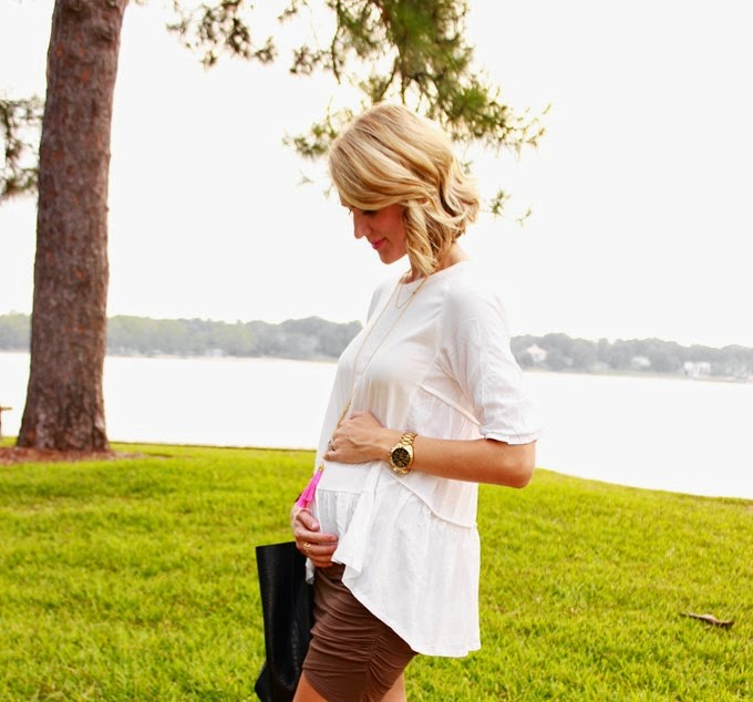 Love the sandals, and the cute bump too! You look great and the pop of pink tassel is spot on!