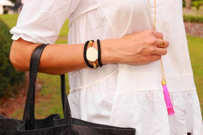 {top: ChicWish c/o // skirt: Victoria's Secret (old, but similar styles below!) // sandals: Sseko Designs c/o // necklaces: MayaBrenner c/o & MickeyLynn c/o // bag: Joe's Jeans // bracelet: MickeyLynn c/o // rings: AnnTaylor c/o & Gorjana c/o}