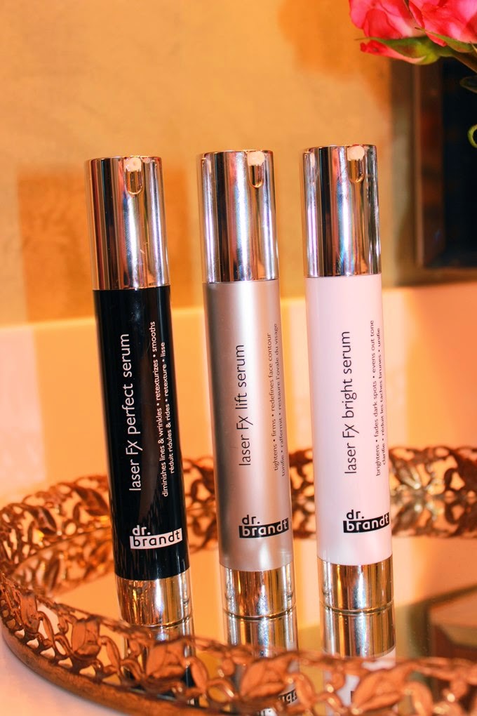 • laser Fx Bright Serum ($78): Your Target? Dark spots and dullness. Brighten skin while fading dark spots and evening tone with Encapsulated Vitamin C, Epidermosil, and Knotgrass Extract—a proven infrared and thermal aging fighter. With just one application skin looks instantly more luminous. For optimum results dr. brandt recommends to use UV protection SPF 30 daily such as BB Flexitone and avoid prolonged time of sun exposure.