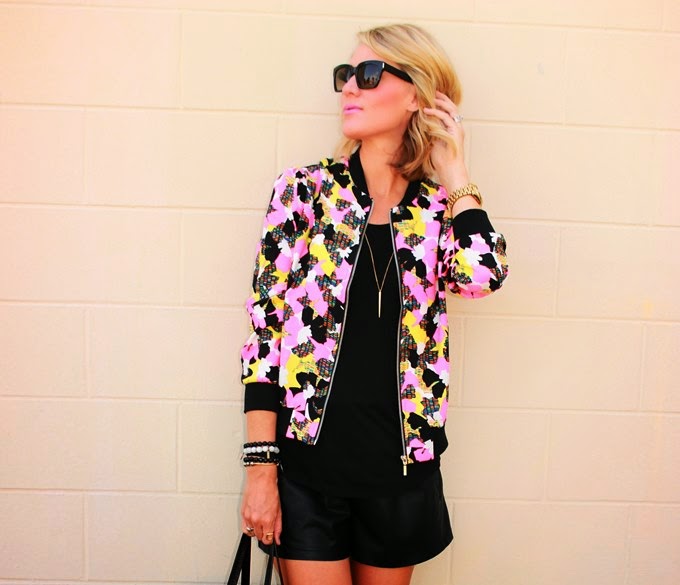 Yesterday we ran a few errands and then grabbed some yummy BBQ for lunch. As hot as the weather is here in FL, I still can't help but slowly transition some fall pieces into my everyday looks (I'm just craving fall so much!!). Case in point, this printed bomber jacket.