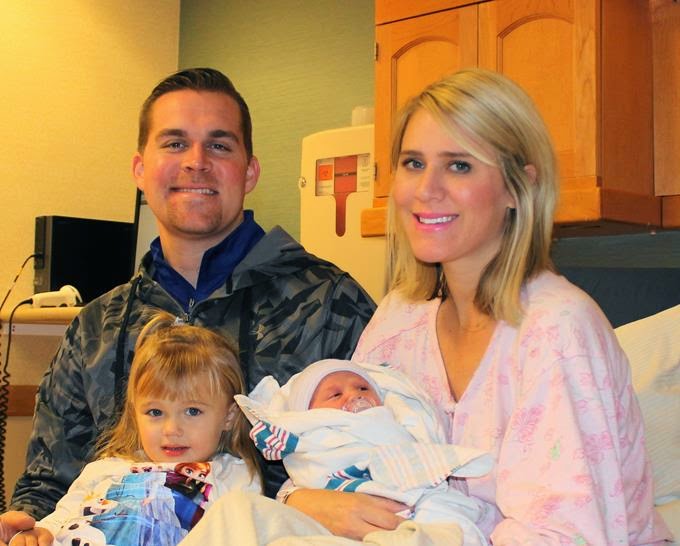 Bridgett was born on her due date -- January 9, 2015 at 5:20 PM. My doctor had me come in at 5:00 AM and she broke my water. I was only dilated about 3 cm when I arrived. Once she broke my water, they administered my epidural (around 8:00 AM) and we waited to see if my contractions would grow stronger. Unfortunately things were moving really slow, and I wasn't dilating quick enough, so they started pitocin to induce my labor. At around 3:30 PM my epidural had started to wear off, so they gave me more meds (and at a stronger dose) and I was feeling great. At 5:00 PM they checked me and I was dilated 10 cm, so we waited for the doctor to come! Waiting about 10 minutes for that doctor to come felt like an eternity. We were SO excited to meet our new baby and the suspense was killing us -- was it going to be a girl or a boy? Once the doctor arrived I only had to push a few times and Bridgett was here! Hearing her cry for the first time was the sweetest sound. When your baby is placed on your chest for the first time it is such a magical feeling. Totally indescribable. You just feel an instant love at that moment.