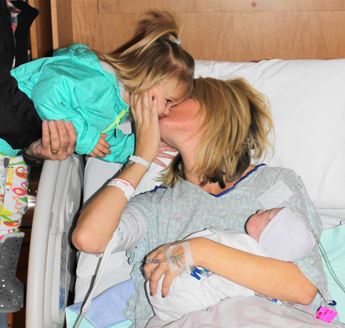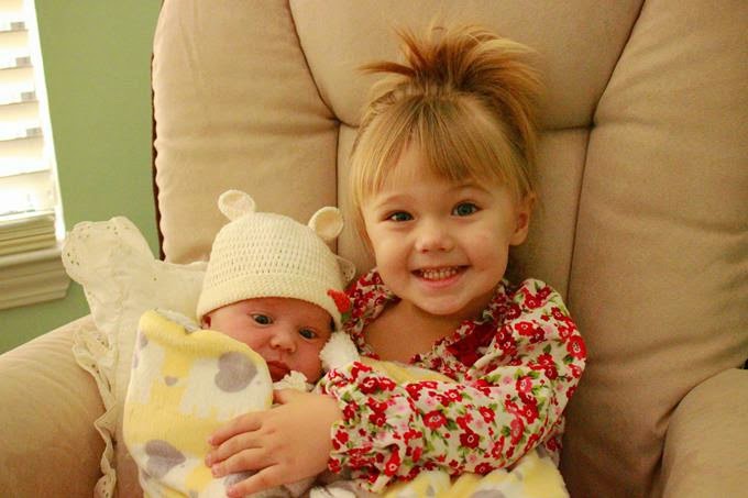 So here she is! Our beautiful, healthy baby girl, Bridgett Claire!! Sorry for the delay in posting photos, y'all... but it has been a whirlwind since she's made it home. We are loving every moment spent with her and our sweet girl, Courtney, but it has been difficult at times. A newborn and a toddler can be a lot to handle (especially during chores or making dinner), but big sister Court has been such a good little helper for mommy. She'll fetch me diapers or blankets when I need them and she's always giving her new little sister sweet kisses. I always wanted a sister growing up (I have 3 brothers), so I am so excited to raise these two girls together and to watch their relationship grow through the years.