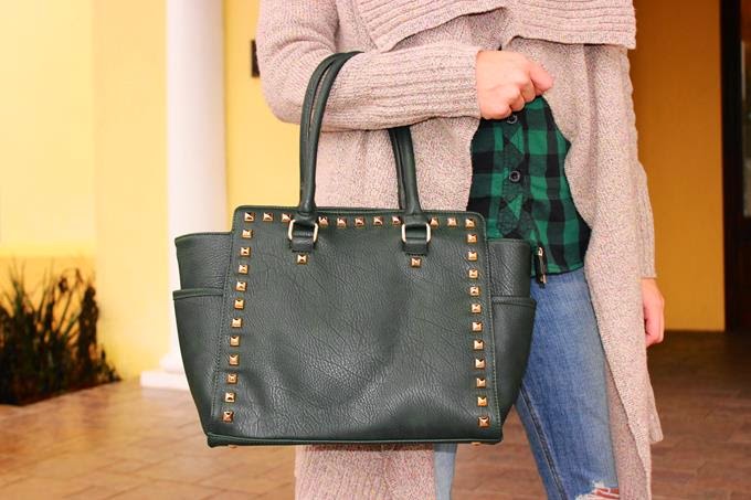 Can we just stop and discuss how much I love how edgy this bag is & how you mixed it with the slouchy, comfy sweater? You look amazing!