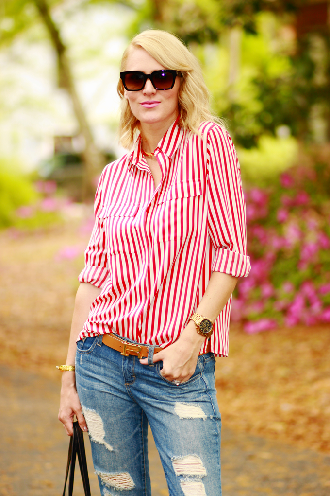 There's nothing more classic then a great pair of denim paired with a button down shirt. I gave the look a twist by pairing it with some edgy, but still pretty classic, accessories. The last time I wore this vintage top I had dressed it up -- check out that post HERE. On another note, y'all may not be a Birkenstock fan, but if you're on the hunt for a comfortable sandal then you should definitely consider these sandals I'm wearing. They're seriously like walking on clouds they're that comfy. They also come in other colors and prints too (and are super affordable).
