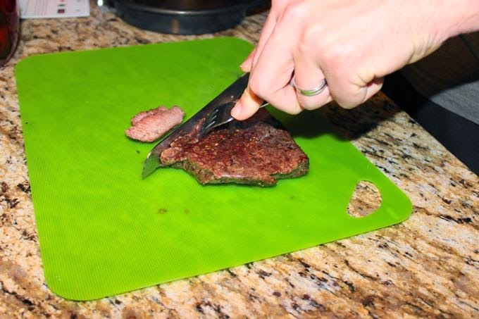 My husband and I were really surprised to see how perfectly organized and packaged the recipes were when they arrived on our doorstep. We received 3 full meals (you'll see the other 2 in later posts) and each meal had it's own plastic bag containing all of the ingredients needed. There was even an apron, cutting board, and complete recipe cards with step-by-step instructions. We were impressed!