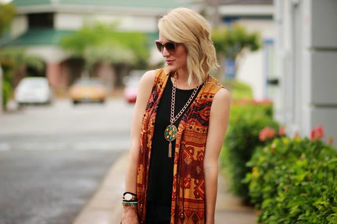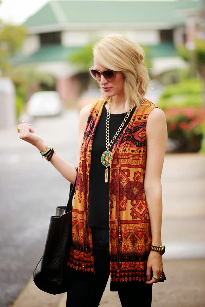 Love the beautiful rich colors of that vest. Love the boho vibe of this outfit.