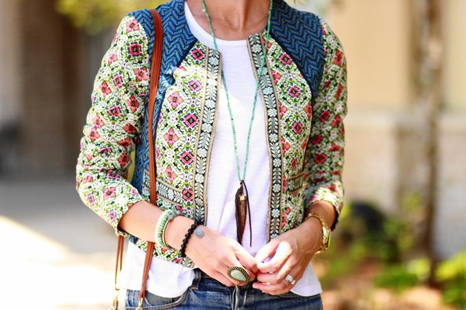 When I'm in a style rut and not sure what to wear, I always reach for a pair of denim, an easy tank, and a great blazer or jacket. It's effortless cool at it's best. It's amazing the difference a cool jacket can make. In both looks I'm wearing a simple white tank and a pair of shorts, but the jackets really make the outfits look pulled together and stylish. The first jacket has a great boho feel to it, with the patchwork print and cropped style. It reminds me so much of a lot of vintage jackets I find while thrifting. The second jacket is minimal chic and is so versatile. It's perfect for those looks where you want to wear a pair of sneakers to run errands or a pair of heels for a night out.