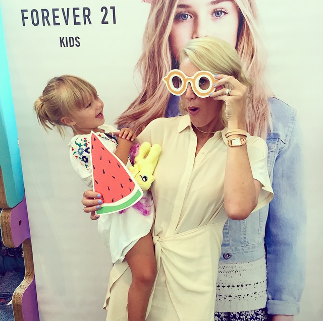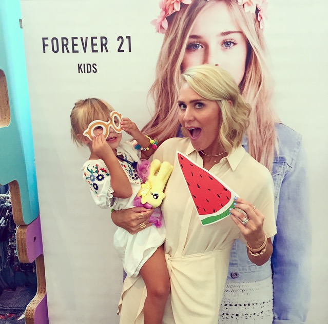Last Saturday I had the pleasure of hosting the Forever 21 Kids Pop-Up Shop at the Dolphin Mall in Miami, FL. There was DIY bracelet making, face painting, and of course, SHOPPING! The turn-out was so great! So many people came to check-out the new collection. The DIY bracelets were also a big hit! I loved helping the kiddos make their bracelets, as well as talking with their mom's and dad's and helping them find the perfect outfit for their kiddo. Forever 21 has so many great styles for the little ones, and of course the prices are so good! My daughter, Courtney wore a Forever 21 Kids embroidered peasant dress (sadly, no longer available) to the event. We belted it and she looked like a little bohemian princess -- so cute! Bridgett was passed out during the event, but we still got a selfie of her w/ the Forever 21 Kids bubble prop! ;) I had such a great time at the event! Thanks to Forever 21 and everyone who came to the event!