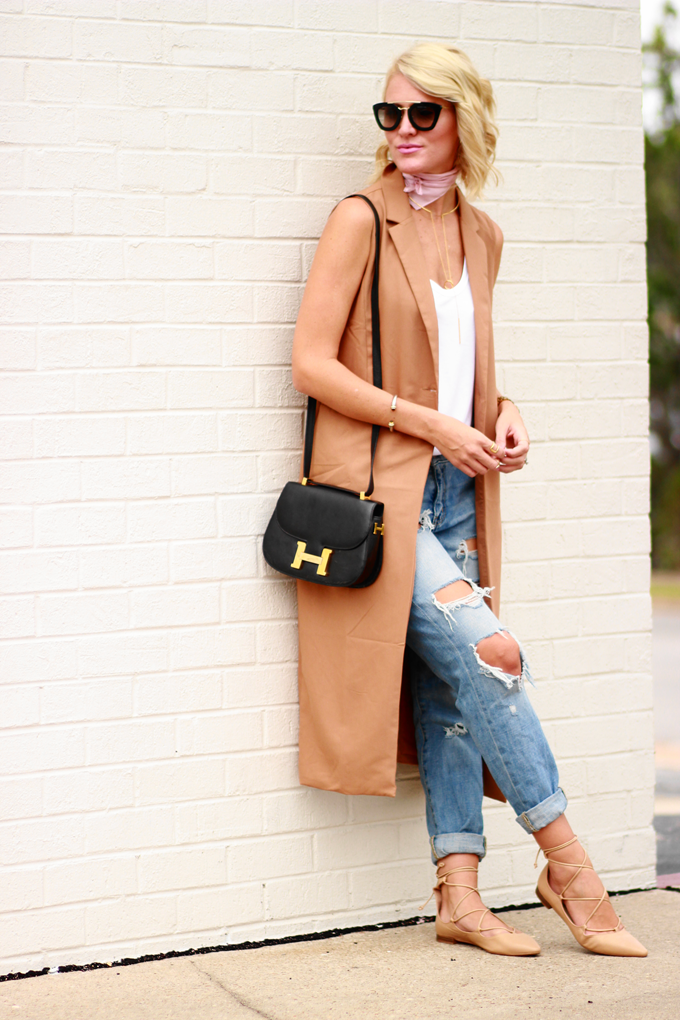 {vest: F21 c/o (another similar style here) // tank: F21 c/o // denim: Target c/o // flats: Zara (similar here and here) // bag and scarf: vintage (similar scarves here/here/here) // sunnies: Prada (designer dupe for $20) -or- *Rent designer sunnies for $19/month at ditto.com/endless! Use code: BELLEDECOUTURE for your 1st month free! // bracelet: David Yurman // necklace: Joyiia c/o (similar)}