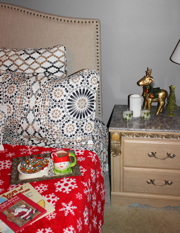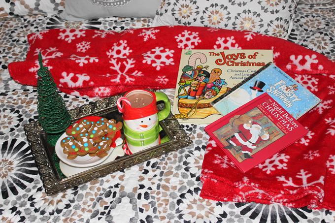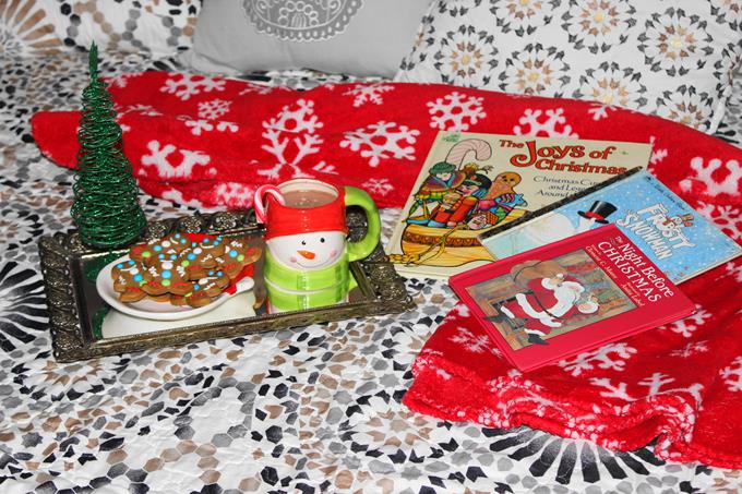 To really get into the holiday spirit I made some hot cocoa and pulled out some of our fave holiday reads. The girls and I cuddled on the bed and enjoyed some holiday treats while our Frasier Fir candle burned. We didn't even burn it very long and my entire bedroom, hallway, and even into the kitchen all smelled like a fresh-cut Christmas tree! We just can't get enough! By the way, how pretty is the gold rim of the Frasier Fir Ceramic Pillar candle? Love it!