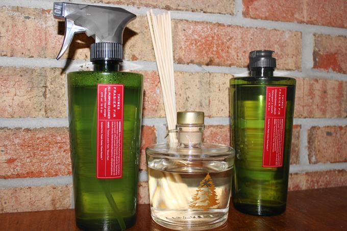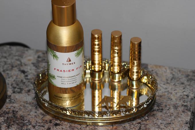 If you saw Part 1 of my series with Thymes then you know I've already started decorating my house for the holidays. You just can't help but get into the holiday spirit when you have scents like Gingerbread lingering around your home. That Gingerbread scent was definitely intoxicating, but if there's one scent that I look forward to each Christmas it's without a doubt the scent of a Christmas tree. We ALWAYS opt for a real tree versus a fake one. We just enjoy the entire experience -- picking one out as a family, decorating it while sipping on hot cocoa and listening to Christmas songs, and oh yes, the SMELL! Nothing beats the smell of a Christmas tree, so when I received Thymes Frasier Fir scent I was beyond smitten! The Frasier Fir scent is a crisp aromatic snap of Siberian Fir needles, heartening cedarwood and earthy sandalwood. It smells like a fresh-cut Christmas tree and it instantly puts me at ease and puts a smile on my face. I love that we can burn the Frasier Fir candles around our home, but also spray the Home Fragrance Mist and display the pretty diffuser in rooms such as our guest bath. I'm also really loving the All-Purpose Cleaner and the Dishwashing Liquid. We'll be enjoying the classic scent of a Frasier Fir Christmas tree the entire season, thanks for Thymes!