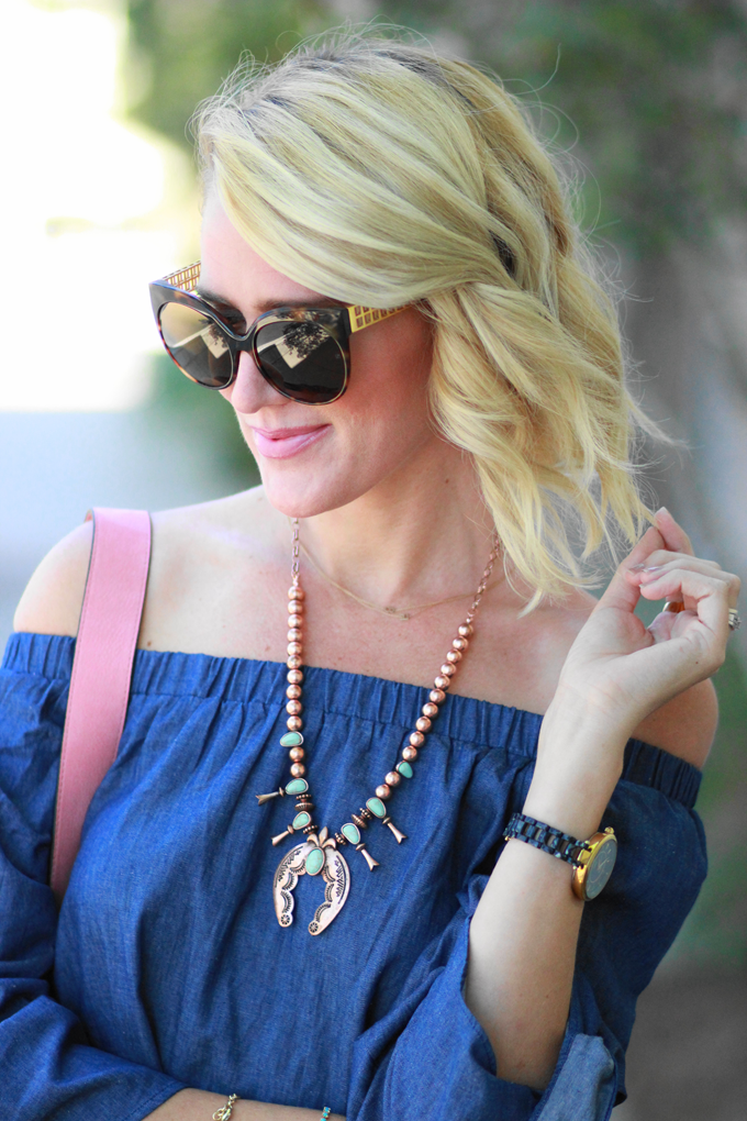 6. I love this off shoulder trend. It's perfect for summer days and looks so feminine and romantic. Your top is lovely and looks gorgeous how you styled.