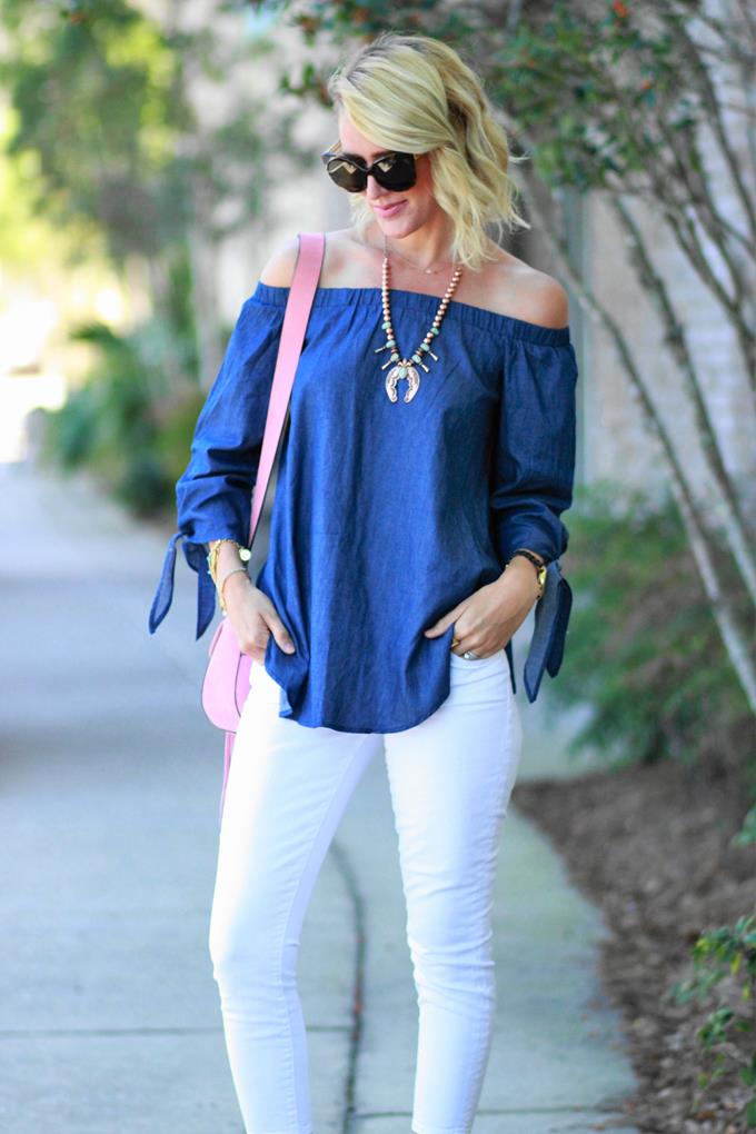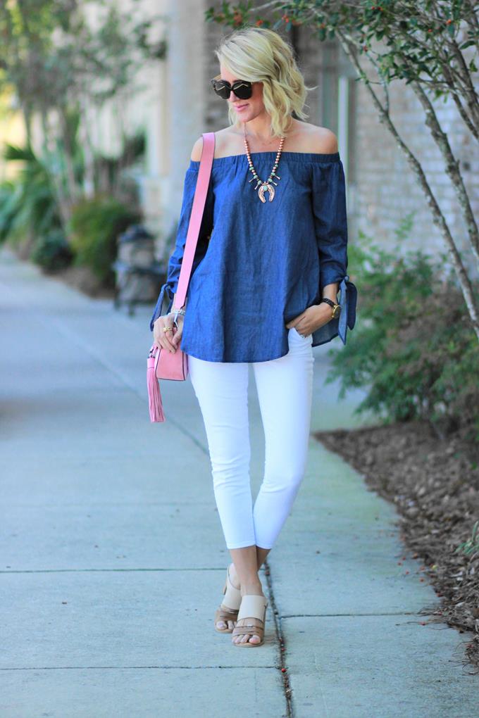 6. I love this off shoulder trend. It's perfect for summer days and looks so feminine and romantic. Your top is lovely and looks gorgeous how you styled.