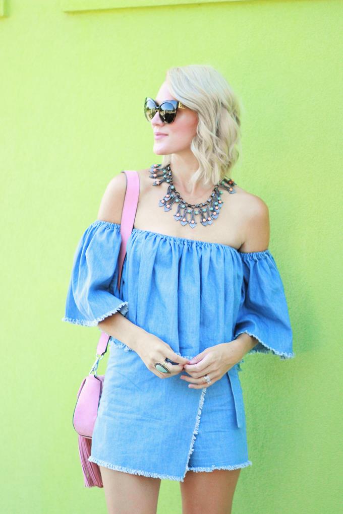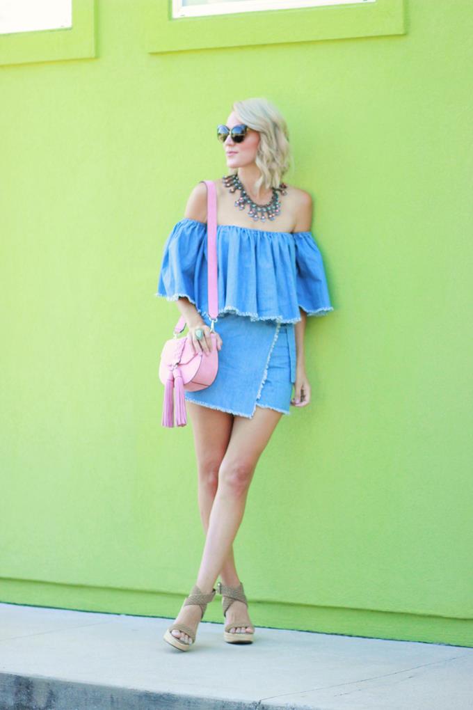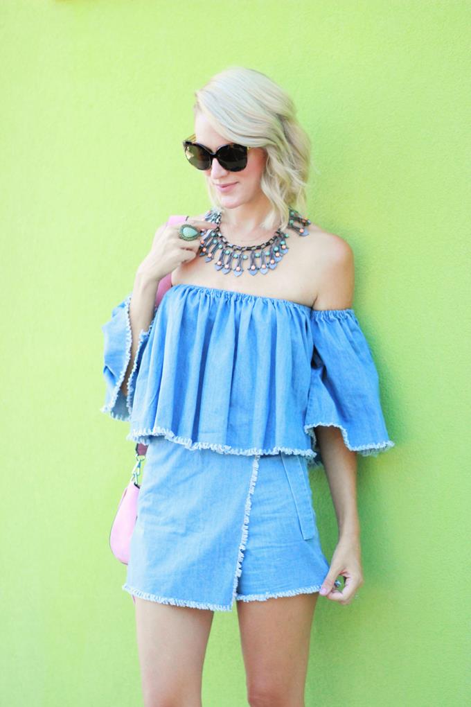 I'm all about a denim on denim look, but it's not as easy to achieve in warmer months. When I saw this denim two-piece set from Chic Wish I was instantly smitten and knew it would be the perfect look for achieving that denim on denim look during the summer. For one, the top is off-the-shoulder (which is another fave of mine and is a summer essential) and the bottoms are a skort (which is a lot comfier/easier than a skirt). Two-piece sets are great because you can wear each piece separately (which means more bang for your buck). This top is perfect all summer long! Pair it with white denim or a pair of flowy printed pants. The skort is perfect for dressing up or down and can be paired with a variety of tops.