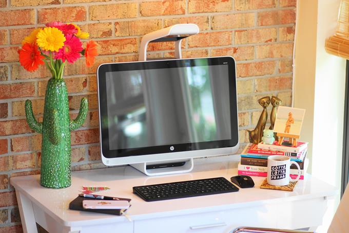 Since my “office” also happens to be in their playroom, I’ve steered clear of putting a bunch of knick knacks on my desk (even though I am SUCH a knick knack person and SO want to decorate my desk with them).
