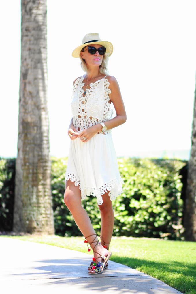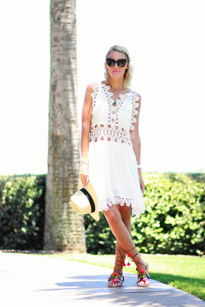 The summer heat has me living in easy dresses like this. Light-weight, slinky fabrics and spaghetti straps are the only way to stay cool -- especially in this sticky humidity we have here in Florida. Especially loving the crochet detail on this style, and for under $19 it's a total score!! I wish I had snapped some pics of the back to show y'all, because it's one of my fave parts of this dress. It's completely open, except for the thin t-strap. This dress is perfect for that summer vacay and can easily take you from the pool/beach out to dinner -- dress it up or down. I'm all about less packing on my trip, so if I can get multiple wears in one trip then I'm sold.