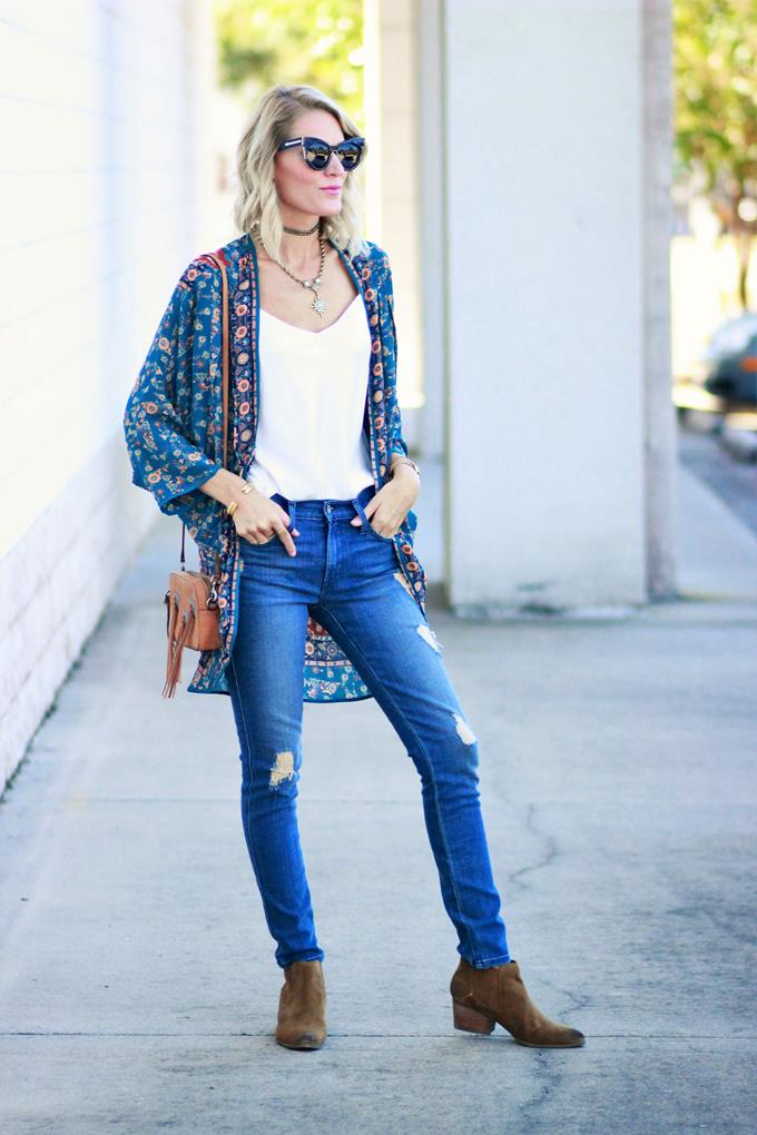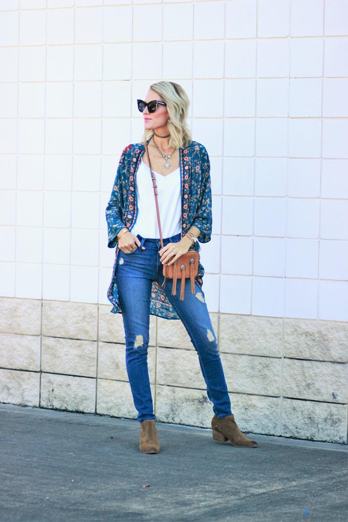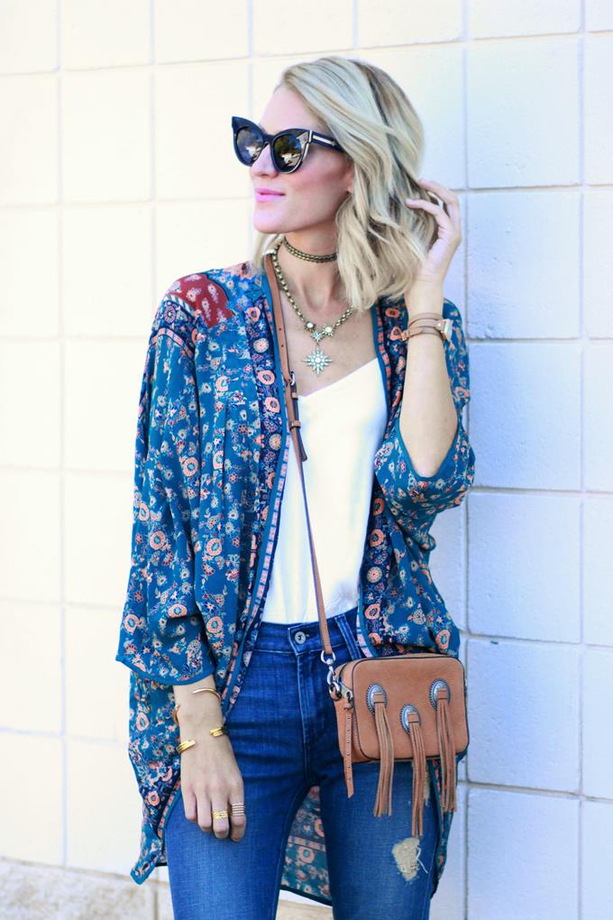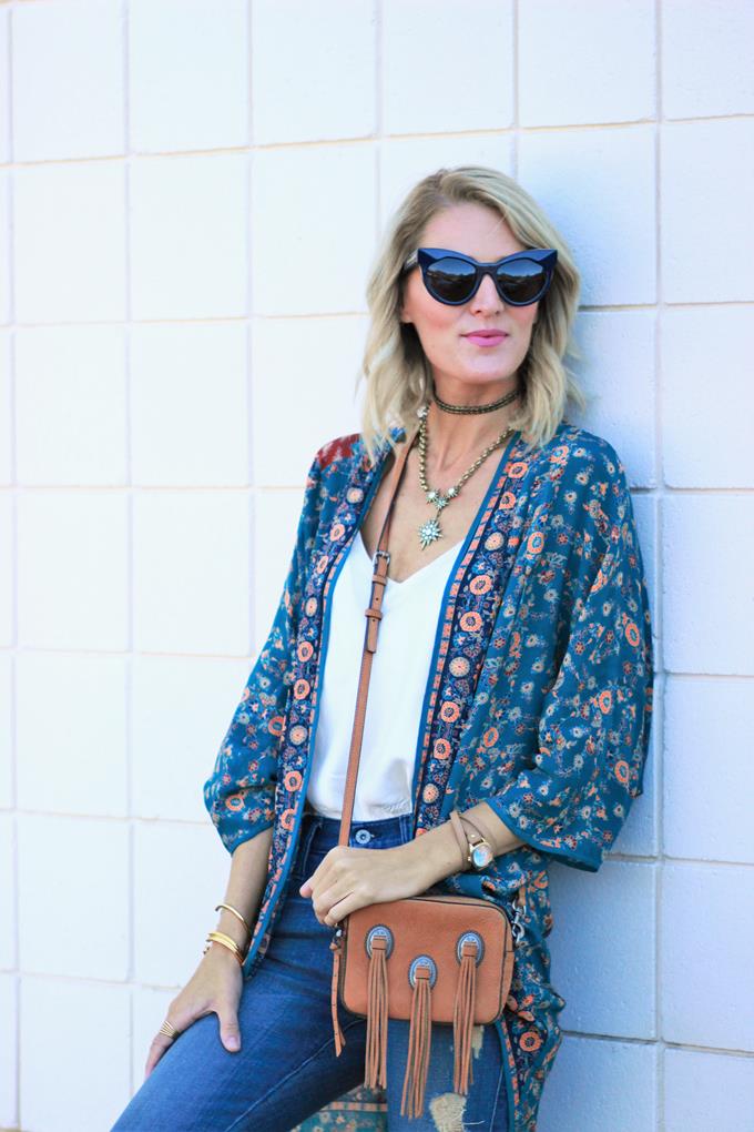 {cami: Yummie by Heather Thomson c/o // kimono: Tolani c/o (another print here) // jeans: James Jeans (this is an older style that's sold out, but here's a similar style) // ankle boots: DSW c/o (comes in 6 colors!) // bag: Rebecca Minkoff (also here and on sale!) // sunnies: Karen Walker via DITTO.com/endless *Rent designer sunglasses for less than $25/month! Keep as long as you want + free shipping both ways! Use code: BELLEDECOUTURE for your 1st month free! // necklace set: BaubleBar (also love this one) // rings: Miranda Frye c/o // cuffs: Stella Valle c/o // watch: La Mer x Anthro c/o}